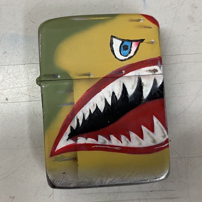 Zippo original de 1942-45, Airbrush, One of a kind 1/1. Avión de combate Kittyhawk P-40E boca de tiburón de la segunda guerra mundial.